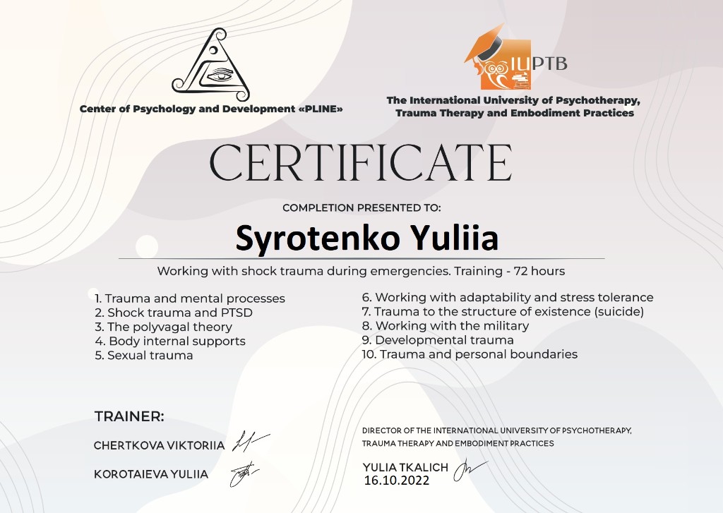 Сертифікований спеціаліст у бодинамічному підході